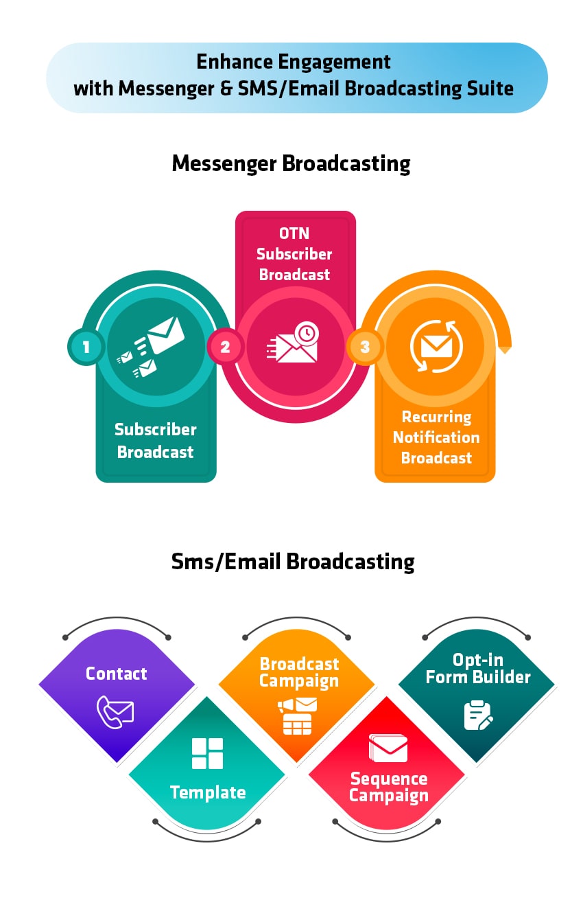 Broadcasting can do Email and SMS marketing. That is, it can send bulk Emails and SMS to customers Email and phone numbers automatically.